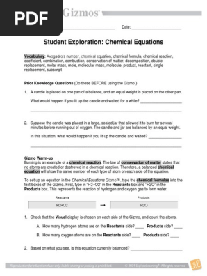 Student Exploration Balancing Chemical Equations Gizmo