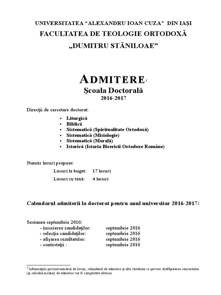 Pentru a putea fi înmatriculați începând cu 1 octombrie 2020, toți candidații admiși și confirmați (la taxă și buget) în sesiunile iulie și septembrie 2020 trebuie să aducă la decanatul facultății de litere (corp t, sala tp1) actele necesare la dosar (conform listei) și contractul de școlarizare semnat olograf. Facultatea de litere bucuresti admitere 2020. 0%0% au considerat acest document util, bifați acest document drept util.