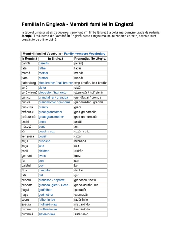 Rezolva exercitii verficare si teste intelegere orala, scrisa, gramatica. Denumirea membrilor unei familii in franceza: Reverso context oferă traducere în context din română în franceză pentru membru, cu exemple:
